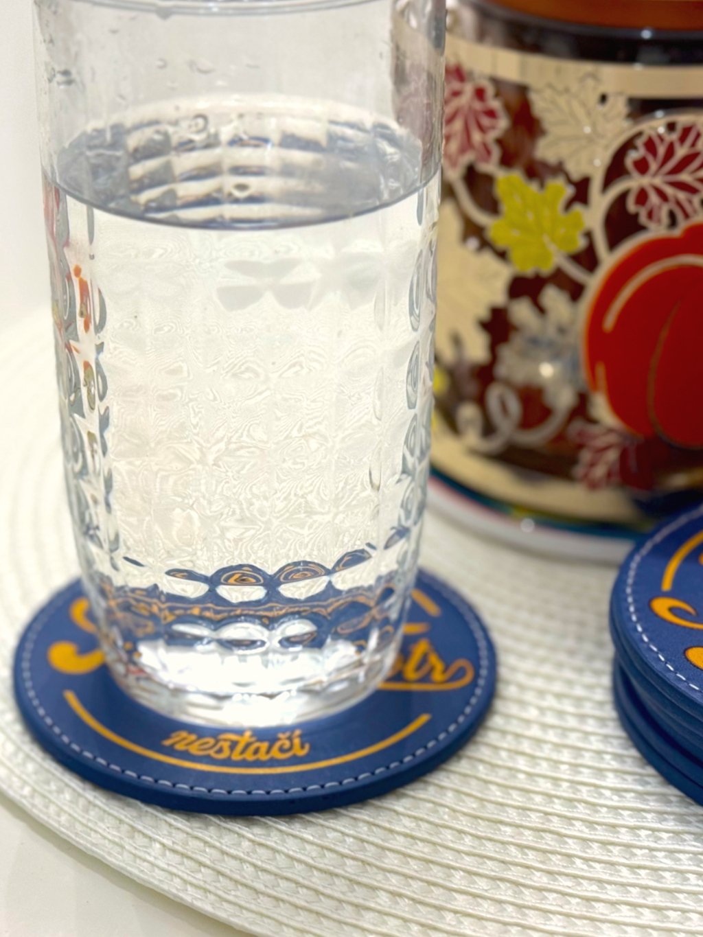 Podtácek ke klasickému použití, materiál umělá kůže. Omyvatelný (doporučuje se použít vlhký hadřík) Rozměry 10x10 cm. NENÍ VHODNÝ DO AUTOMATICKÉ MYČKY!