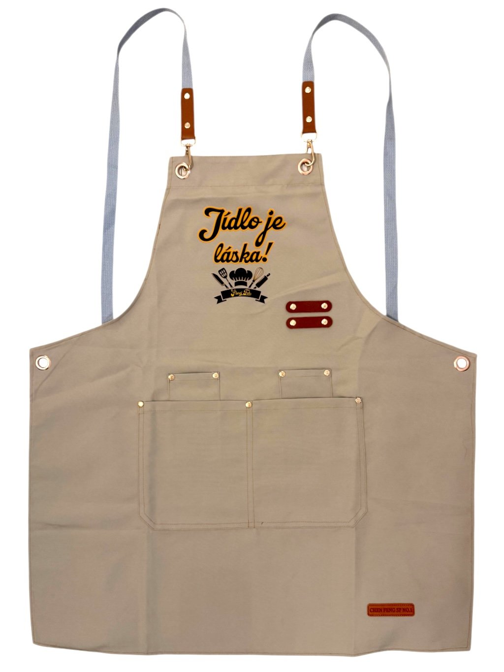 Odolná kuchařská a grilovací zástěra s nastavitelnými popruhy, kapsami a posíleným šitím.